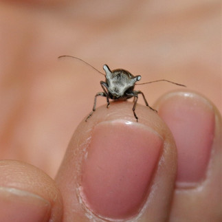 7月26日、自然館スタッフがエゴヒゲナガゾウムシの雄を手に乗せて連れてきました。