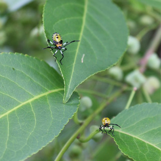 園内のマユミの木に群がっていたのはキバラヘリカメムシ。マユミをはじめ、ニシキギや