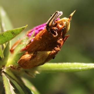 今日は、蕾という蕾に虫が捕まって動けなくなっている、最強のツツジに出会いました。