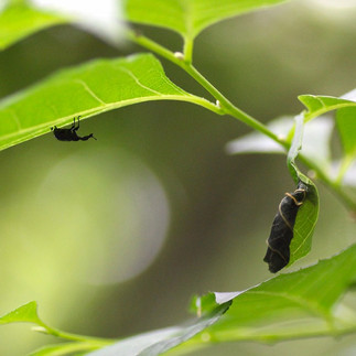 鳥が好まないテントウムシに擬態することで、被食を免れているものと考えられています。