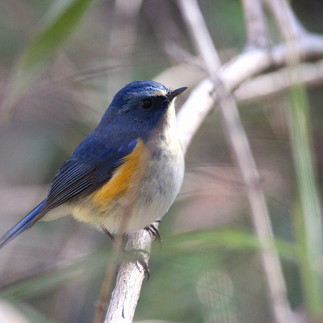 いると、落ち葉が取り除かれたU字溝の周りを動き回る、青い小鳥の姿が目に入りました。