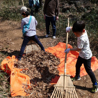 サクラ類の開花調査、カエル類の産卵調査、そしてメインは落ち葉ストッカーの製作です。