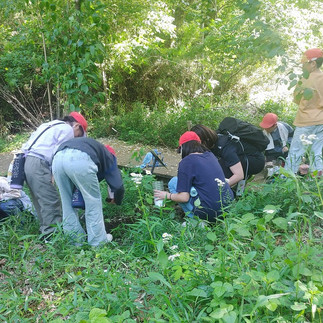 堀り込んだ際に積み上げてあった泥土を、各自が持参したペットボトルに採取しました。