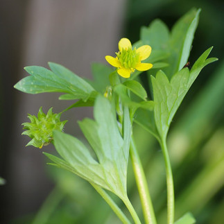おなじみのケキツネノボタンです。花はそっくりですが、果実や茎葉はまるで違いますね!