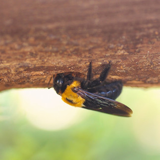 キムネクマバチが一生懸命ほじほじしていました。巣作りでしょうか?可愛かったです!