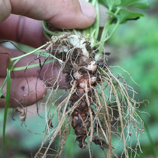 あります。抜いてみると、ワサビのような立派な根茎が現れます。根茎ごと掘り採るのは