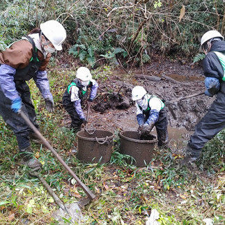 助っ人をお願いしました。みんな、胴長を着て全身泥だらけで頑張ってくれましたよ!