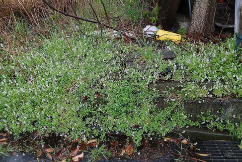 ニセカラクサケマンが生えているのは、交通量の多い道路沿いの植え込みとその周辺の道ばたです。探すまでもなく