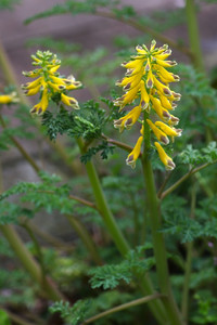 ムラサキケマンの花の色が白っぽくなるタイプの品種でシロヤブケマンと呼ばれるものです。3枚目はキケマンです。