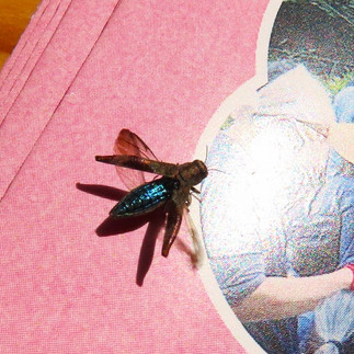 翅を広げると、エメラルドに輝く胴体が露わになります。私にはそれを写す腕と根気が