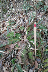 同じ道沿いの炭焼き小屋そばには、同じく園内唯一のアカハナワラビが1個体生えており、マーキングしてあります。