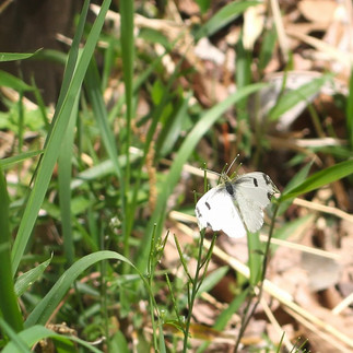 手すり上にはコガシラコバネナガカメムシが何匹も。ツマキチョウ(雌)も遊びに来ました。