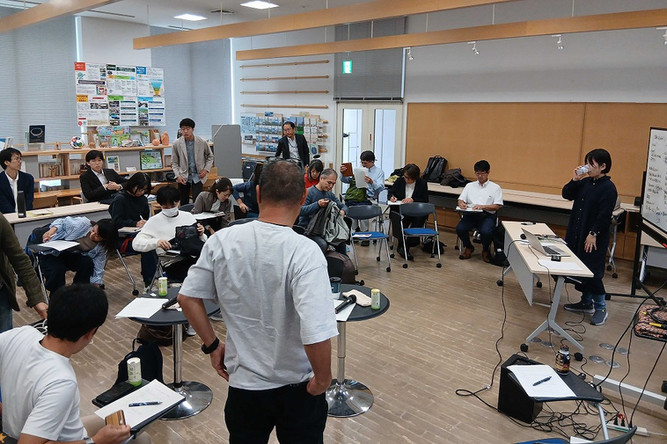 様子です。各人から簡単な活動紹介が行われたあと、課題に沿ってアイディアや現状などを