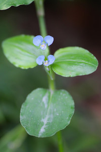 朝一番、京王堀之内駅前の歩道沿いにマルバツユクサがたくさんあるのが目に入りました。