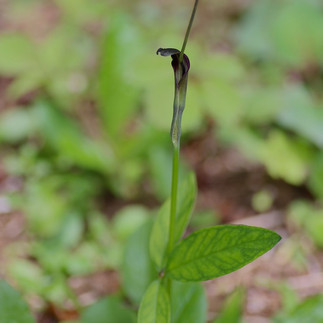 カラスビシャクの色変わりの品種、ムラサキハンゲです。普通のカラスビシャクは全体が