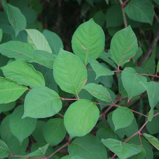 作業車両を停めたすぐ脇に、中国原産の外来種、カライタドリが枝を広げていました。