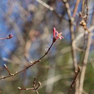 陽だまりでは早くもオオイヌノフグリが咲き、林縁のウグイスカグラも開花していました。