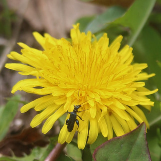 午前中は、元気に咲いているタンポポが虫たちのレストランになっていました。