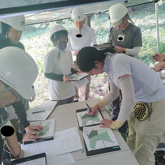 くまなく歩いて、危険箇所や重要な動植物などを図面に落とし、情報共有を行いました。