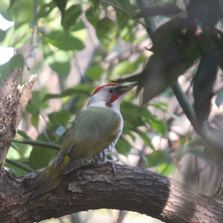 広場のアキニレの木にはアオゲラがいます。危険が近付くとキンモクセイの藪へ逃げます。