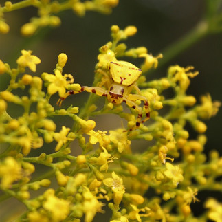 花に擬態して獲物の昆虫を待ち伏せるアズチグモです。それにしても見事な溶け込みよう。