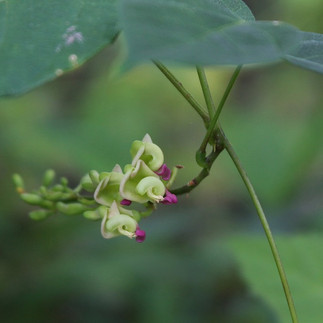 自然館前、正面入口を出た突き当りの足もとに絡んでいるホドイモが咲きました。
