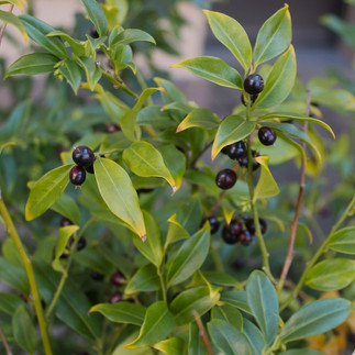 このほか、さくらトイレの前のサルココッカの実、夕日展望台花壇のヤブコウジの実、