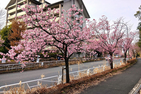 3月22日、バス通り沿いの陽光桜並木が予想どおり、この三連休で一斉に開花し、多くの見学者で賑わっています。